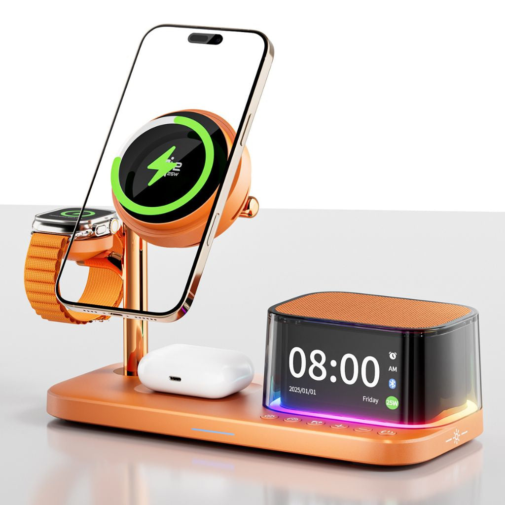 Magnetic Qi2.2 25W charging with built-in speaker and smart alarm.