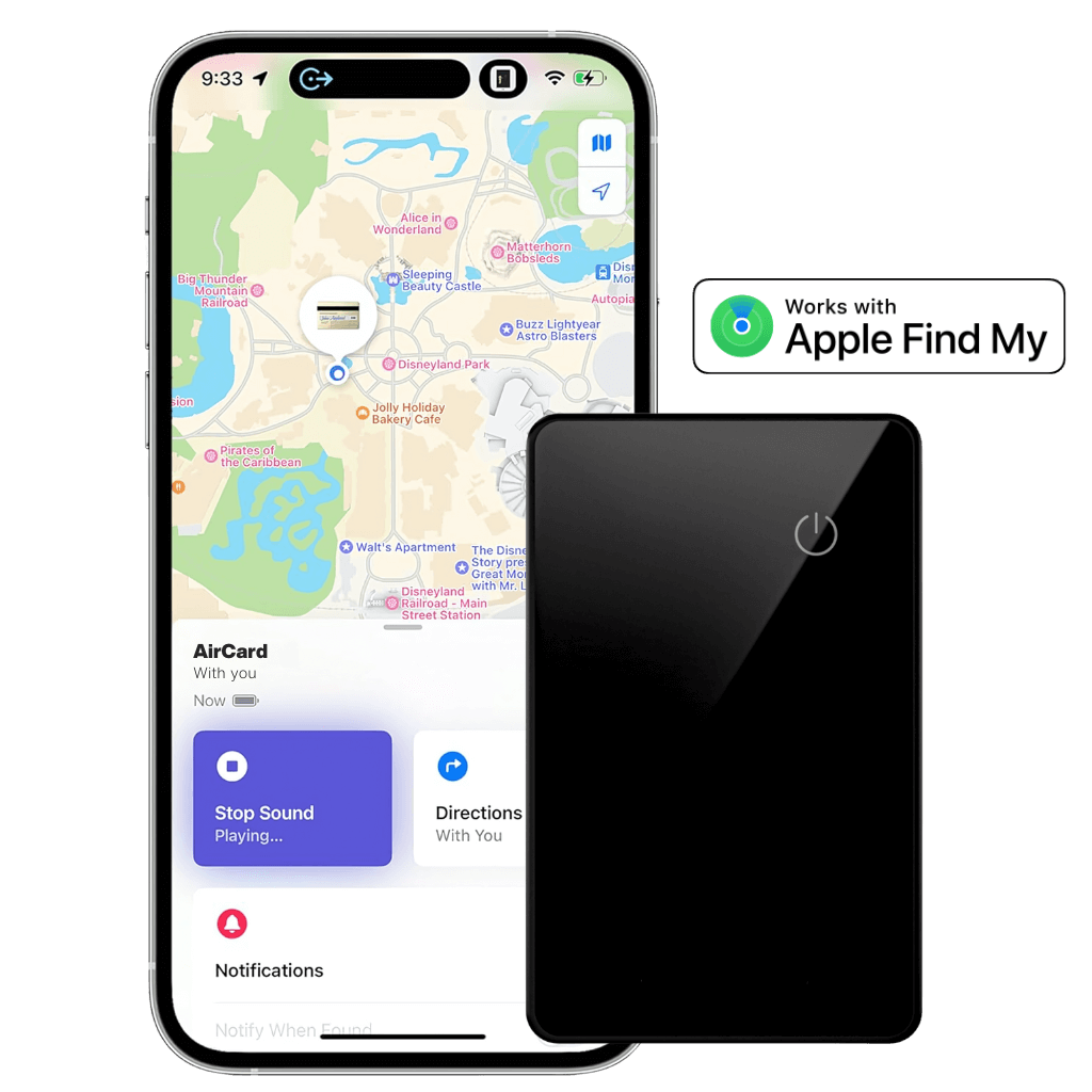 AirCard works with Apple devices running iOS 14.5 or later and is fully integrated with the Apple Find My app.